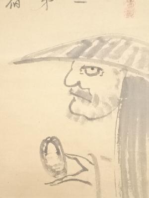 江戸後期 春叢紹珠筆 大燈国師像 「風餐水宿無人記第五橋辺二十年」 肉筆紙本掛軸(保護箱)