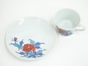 有田焼 今泉今右衛門窯造 錦牡丹絵紅茶碗(共箱)