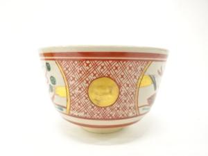 加藤昌山造 赤絵 草花 茶碗