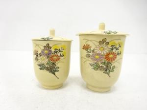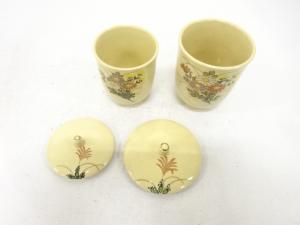 作家物 薩摩焼 金彩色絵 蓋付湯呑