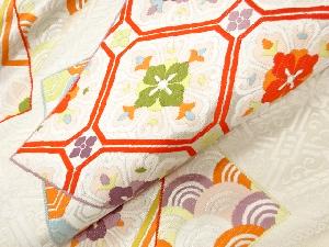 リサイクル 色紙に古典柄・華紋模様織出し袋帯