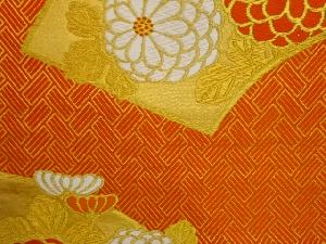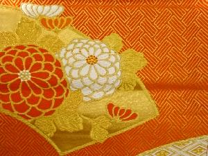 リサイクル 地紙に菊・菱模様織出し袋帯