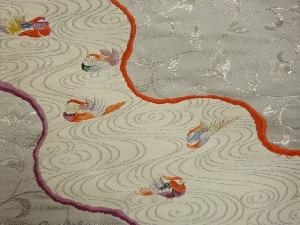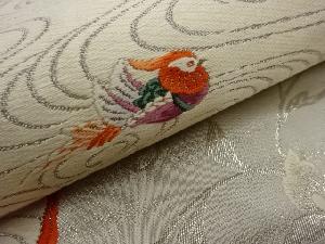 リサイクル 九百錦プラチナ箔花唐草・流水に鴛鴦模様織出し袋帯
