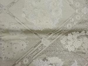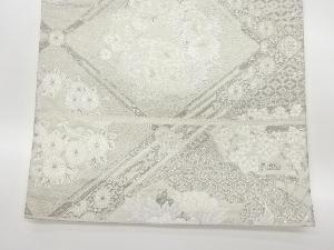 リサイクル プラチナ箔扇に格天井・花々模様織出し袋帯