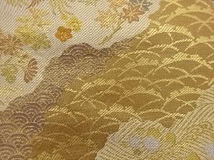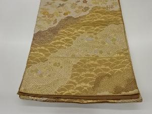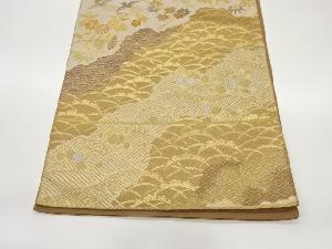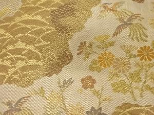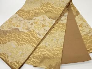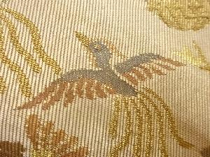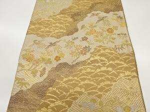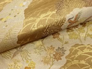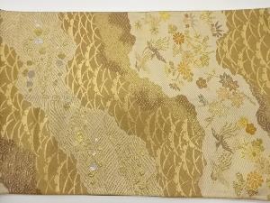 道長取に秋草・鳥・波模様織出し袋帯