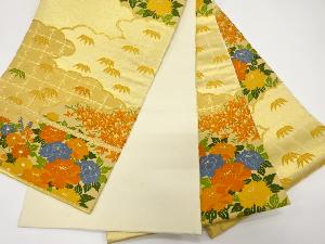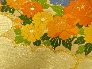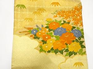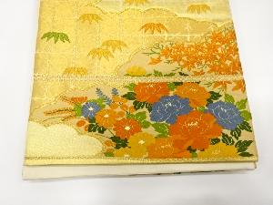 雲取りに牡丹・笹・紅葉模様織り出し袋帯