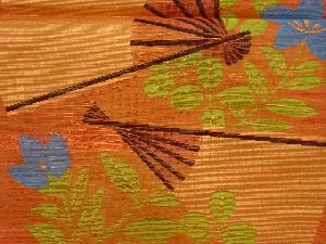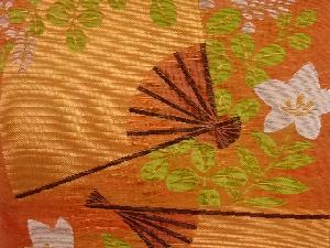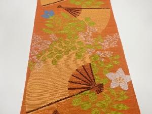 織悦製 紗 扇に桔梗・萩模様織出し全通袋帯