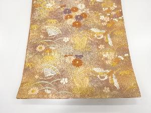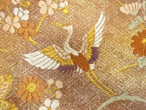 佐賀錦 鶴に松竹梅・菊・桧扇模様織り出し 袋帯