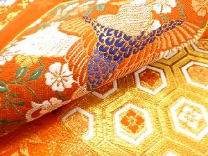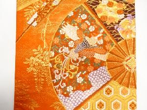 扇に鳳凰・花・古典柄模様織り出し 袋帯