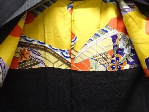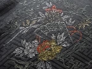 大正ロマン 檜扇に花模様織出し漆一ツ紋絵羽織