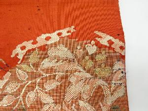 リサイクル 樹木・鳥模様織り出し紬名古屋帯