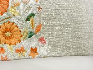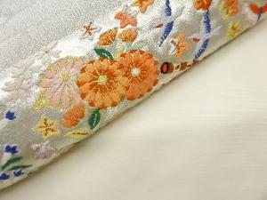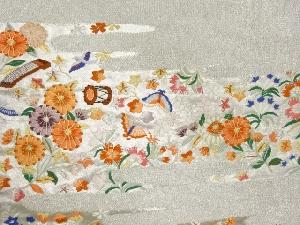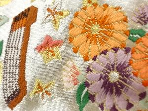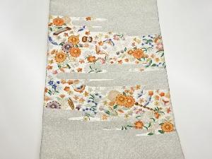 リサイクル 花々に蝶・鳥・和楽器模様織出し名古屋帯