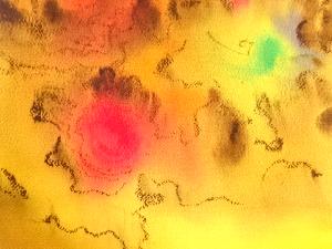 リサイクル 縮緬地手描き抽象模様名古屋帯