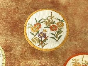 リサイクル 丸に菖蒲・菊模様織出し名古屋帯
