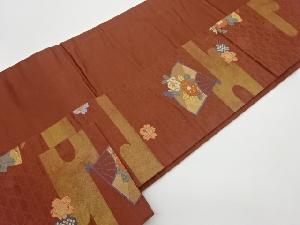 リサイクル ヱ霞に扇・花々模様織出し名古屋帯