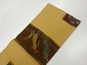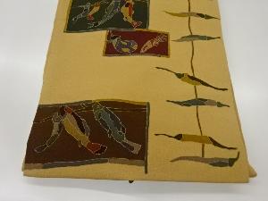 縮緬地金彩唐辛子に魚・野菜模様名古屋帯