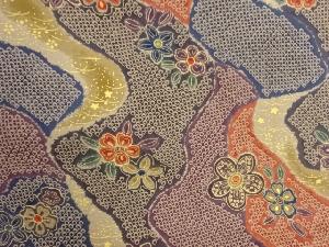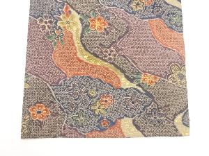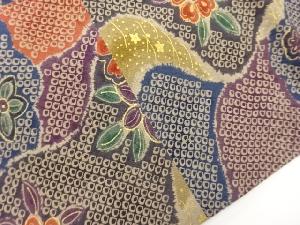 塩瀬金彩道長取に鹿の子・花々模様名古屋帯