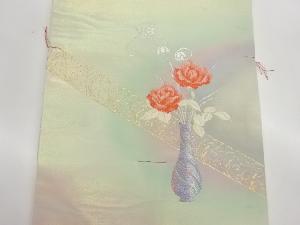 未使用品 花瓶に薔薇模様織出し名古屋帯
