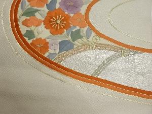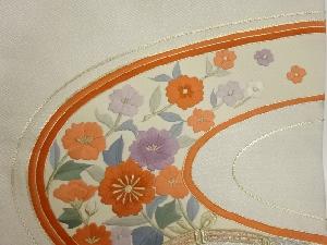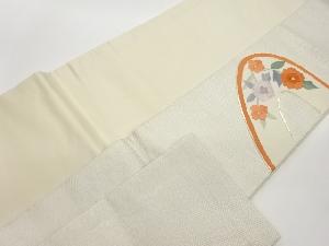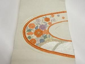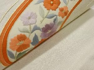 金駒刺繍曲線に花々模様名古屋帯
