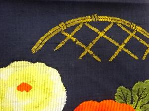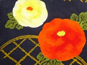 手織り紬光悦垣に万寿菊模様織出し名古屋帯