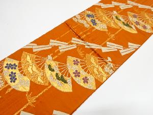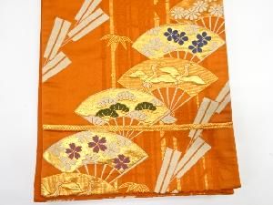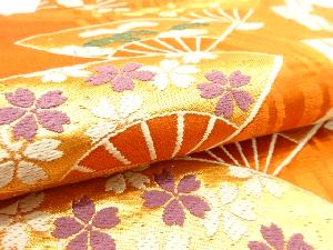 扇面に鶴・花模様織り出し 子供帯
