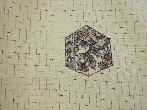 アンティーク 亀甲に花更紗模様手織り紬着物