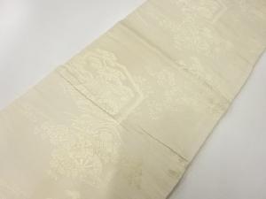 アンティーク 御所車に松・草花模様織出し丸帯(材料)