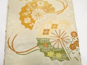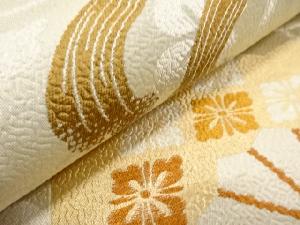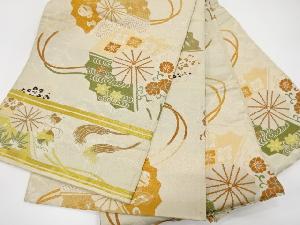 アンティーク 三つ扇に花・糸巻き・宝尽くし模様織り出し丸帯(材料)