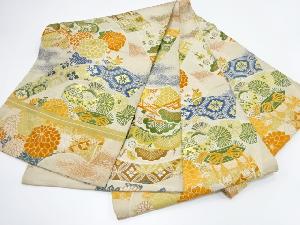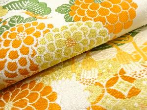 アンティーク 地紙に貝桶・花模様織り出し丸帯(材料)
