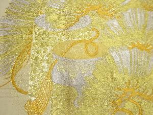 アンティーク 松竹梅に御所車・貝桶模様織り出し丸帯(材料)