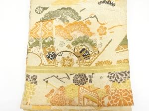 アンティーク 読み本に鶴・鼓・松・梅模様織り出し丸帯(材料)