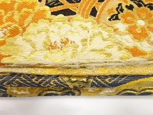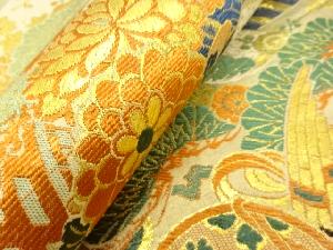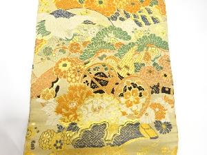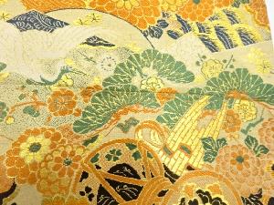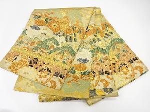 アンティーク 鶴に古楽器・松・梅模様織り出し丸帯(着用可)