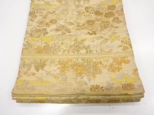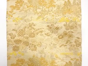 アンティーク 寺院風景に鶴・草花模様織り出し丸帯(材料)