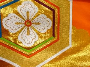 アンティーク 亀甲に花模様織出し袋帯(着用可)