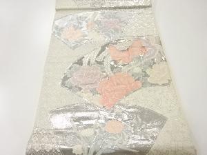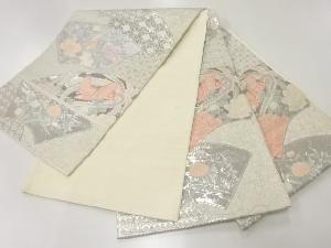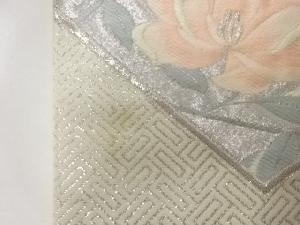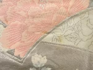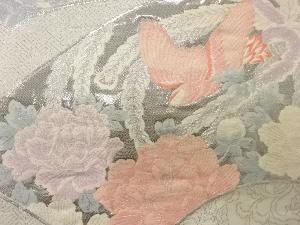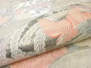 アンティーク 九百錦プラチナ箔地紙に花鳥模様織出し袋帯(材料)
