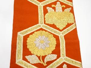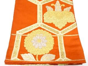 アンティーク 亀甲に桐・菊模様織り出し袋帯(着用可)