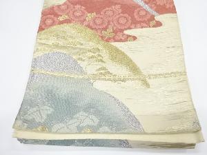 アンティーク 山並に桐・草花模様織り出し袋帯(材料)