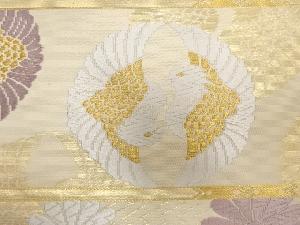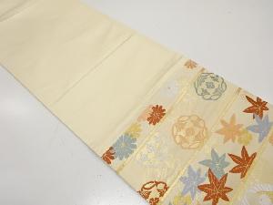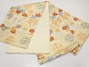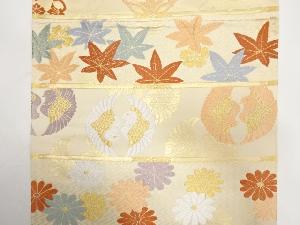 アンティーク 横段に鴛鴦・楓・菊模様織り出し袋帯(材料)