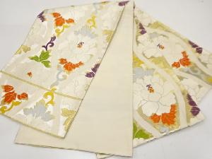 アンティーク 立涌に牡丹模様織り出し袋帯(材料)