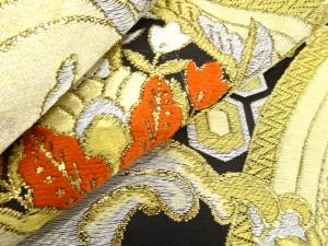 • アンティーク 荒波に花更紗模様織り出し袋帯(着用可)