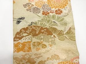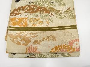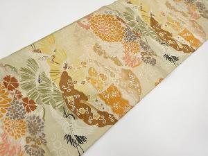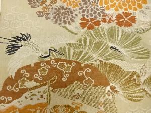 • アンティーク 雪輪に鶴・菊・松模様織り出し開き名古屋帯(額縁仕立て)(着用可)