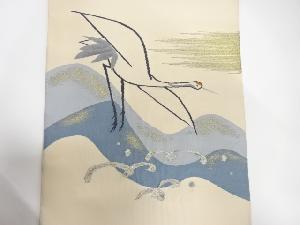 アンティーク 皆川月華作 綴れ 波に鶴模様織り出し名古屋帯(着用可)