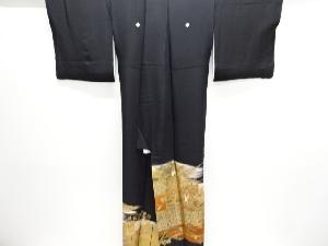 作家物 箔置き御所車に草葉模様留袖(比翼付き)