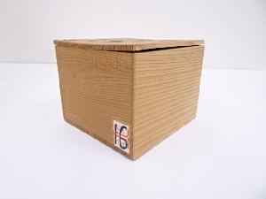 木箱の側面にシールが付着しています。