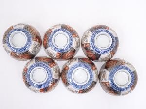 明治期 伊万里焼 染錦蒸碗6客