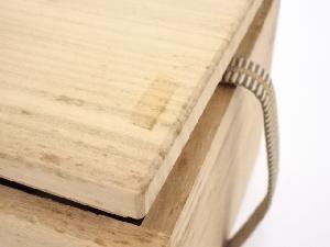 木箱の蓋にシミとテープ跡があります。