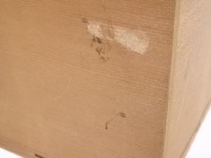 木箱の側面に汚れがあります。
