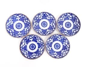 大正期 伊万里焼 印判染付小皿5客