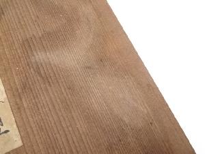 木箱の蓋に汚れがあります。
