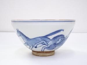 河本礫亭造 青華写馬図茶碗